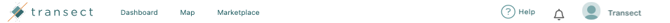 The Navigation Bar can be found at the top of any page in Transect. From the Navigation Bar, you can navigate to different modules, such as the Map or Marketplace, check your notifications, and modify your user settings.