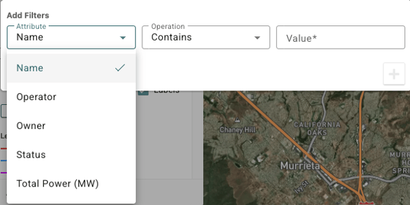 to view data centers based on their Name, Operator, Owner, Status, or Total Power (MW).