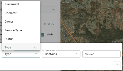to view fiber lines based on their Placement, Operator, Owner, Service Type, Status, or Type.