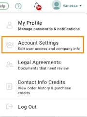 Administrators can navigate their account settings by selecting their name in the upper right-hand corner and then Account Settings. The Account Settings page lists all users tied to the company account, their user email address, their role, and their status (active/deactivated).