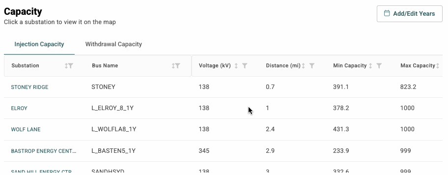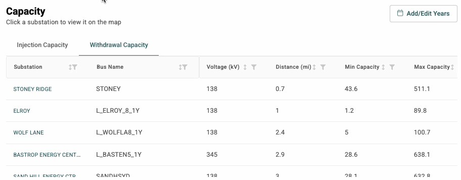 Select your preferred capacity tab or select a substation to view it directly in the Report Map.