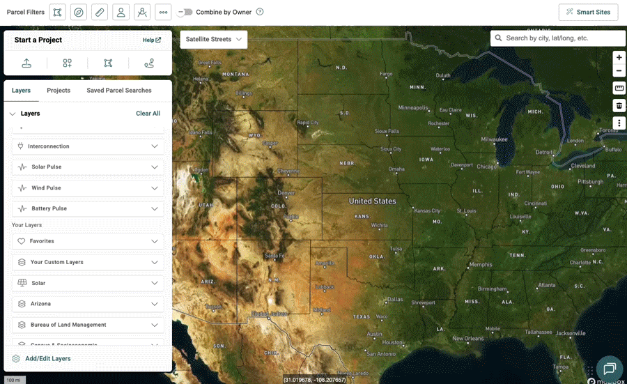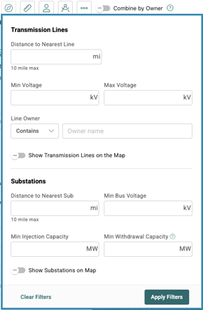 - Optionally, you can toggle the layers for Transmission Lines or Substations to view them in the Map.