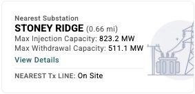 Once a report is generated, the Executive Summary displays a card for the "Nearest Substation." This includes the distance, maximum injection capacity, maximum withdrawal capacity (ERCOT only), and the nearest transmission line. Click View Details for more information.