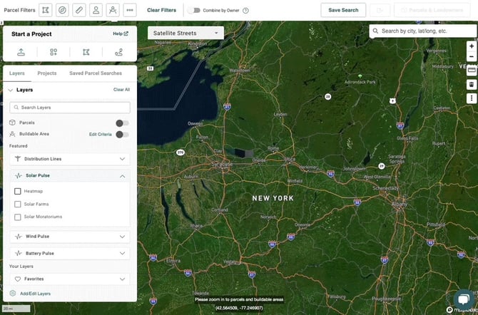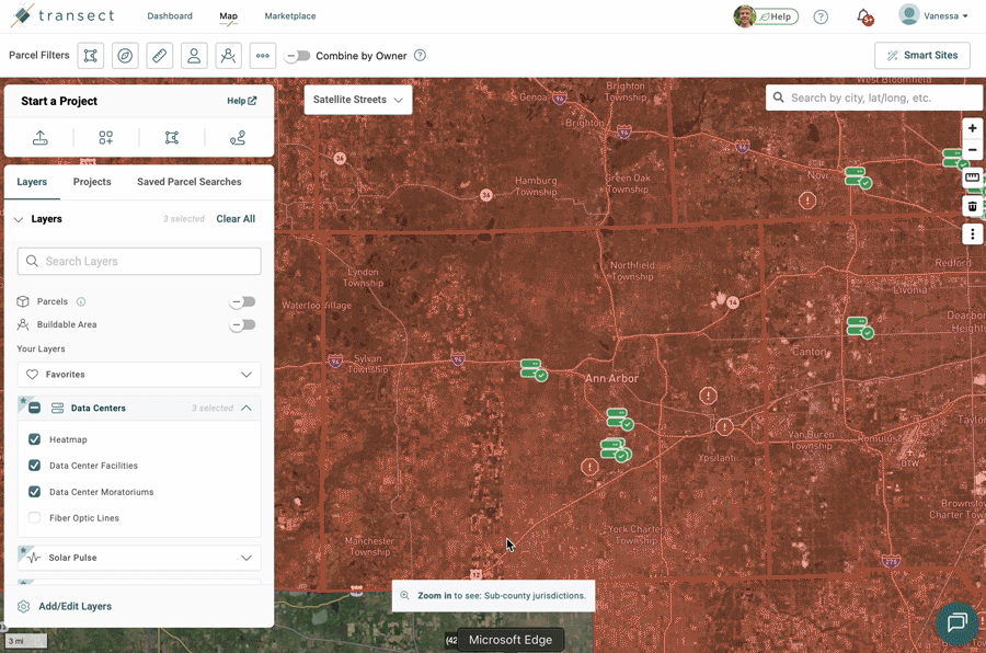 - Moratoriums: Pinpoints jurisdictions with development restrictions. Click a moratorium icon to quickly view its one-paragraph summary and access the original source doc.