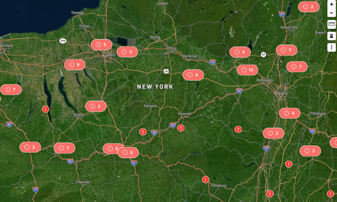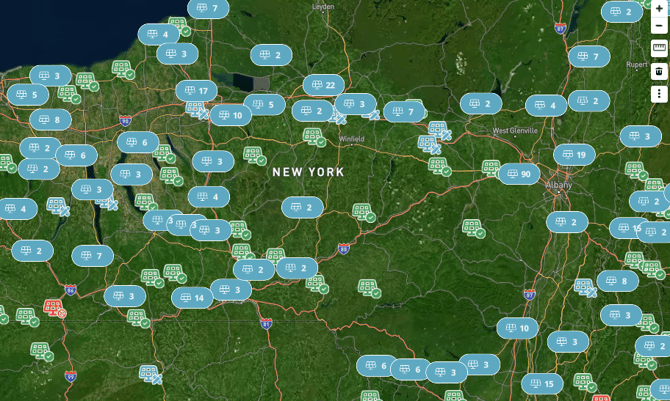 You can view sub-county data by zooming in on the Heatmap layer past a county to identify specific cities, towns, townships, or villages, as shown below: