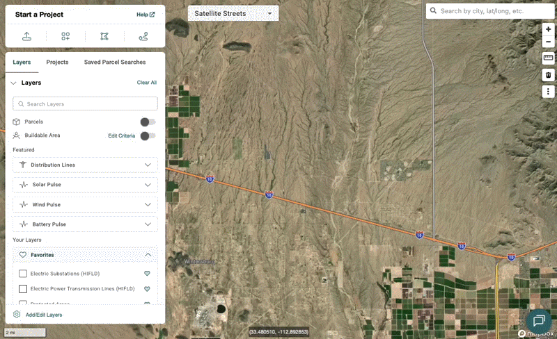 - Search: Search for ideal project sites using an address, APN, or coordinates.