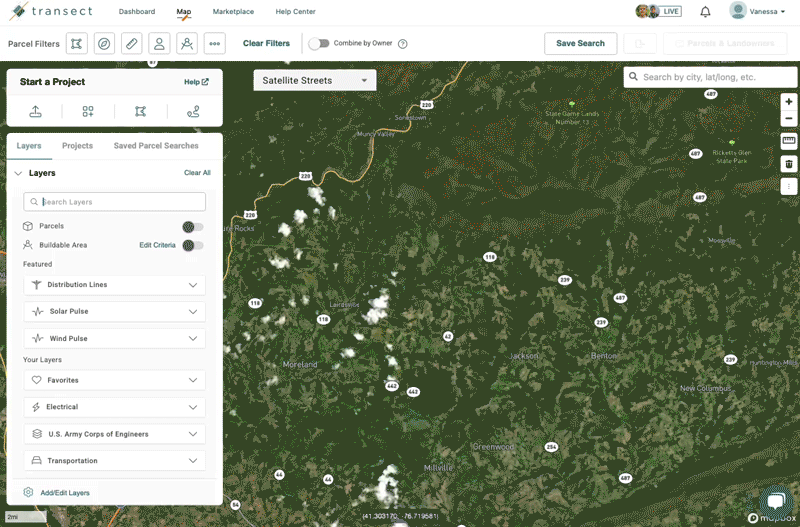 To view the layers in the Map, check the box next to the applicable layer in the Layer Modal.