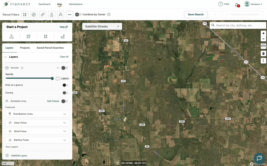 Once a boundary has been created using the Parcel Filter, the “Site Selection” modal will populate on the right side of the page. This modal displays the selected parcels' concern levels (low, medium, high) as percentages. Users can also include Water Concerns for additional insights. Check out this article for more information on the Parcel Filter.